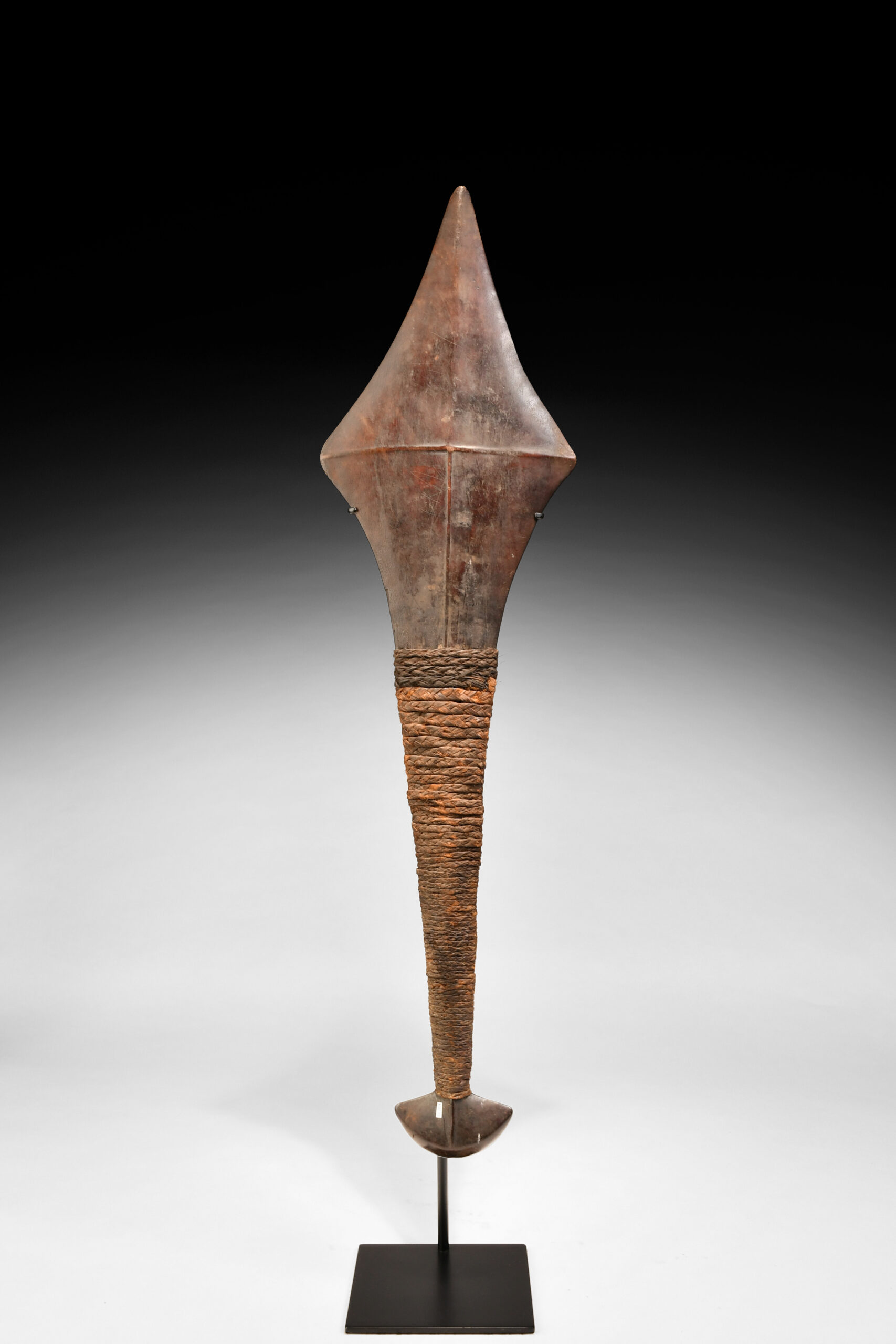 The Subi Club is, in my opinion, one of the most elegant-shaped clubs in the Pacific Islands. The diamond-shaped Club head with medial ridges and long tapering handle ends in a small crescent shape. The Handle is bound with bush fibre rope to keep your hand from slipping when sweaty.